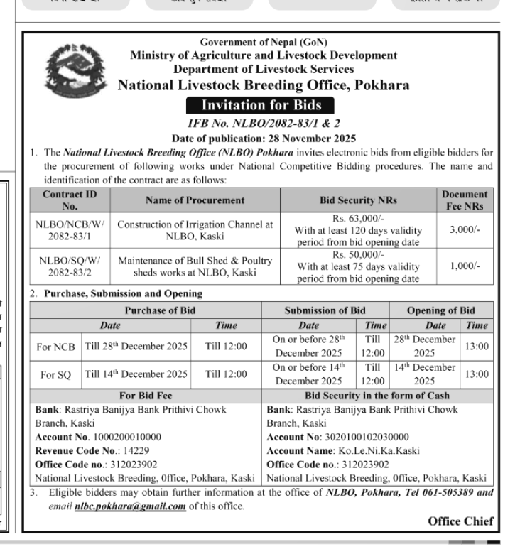 बोलपत्र आब्ह्वान सिचाई कुलो तथा गोठ खोर मर्मत सुधार
